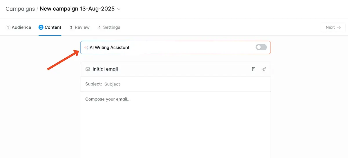 Der KI-Schreibassistent ist Teil der Outreach-Funktionalität von Hunter und wurde speziell für Cold-E-Mail-Kampagnen entwickelt.